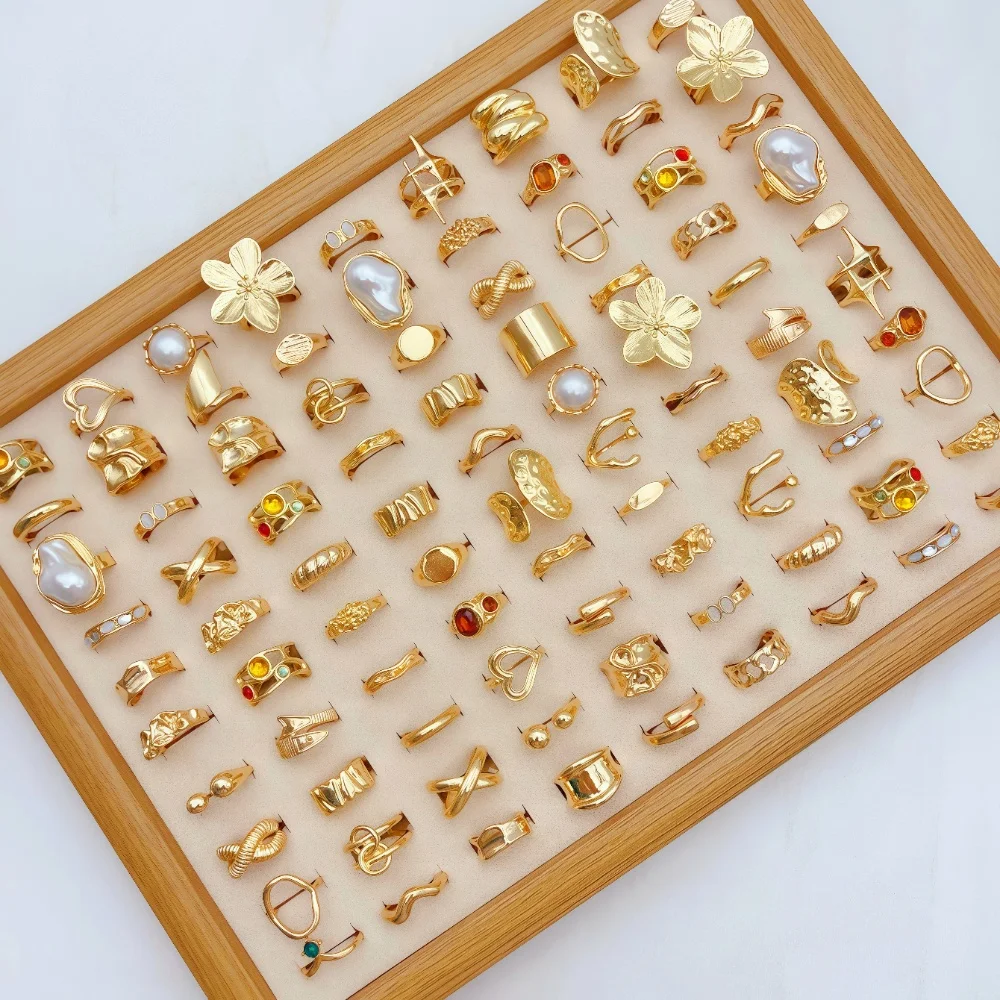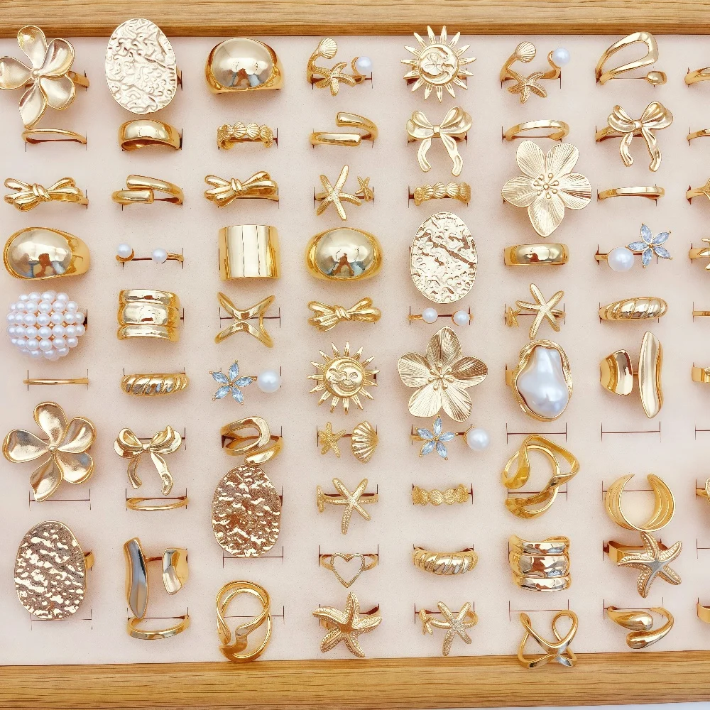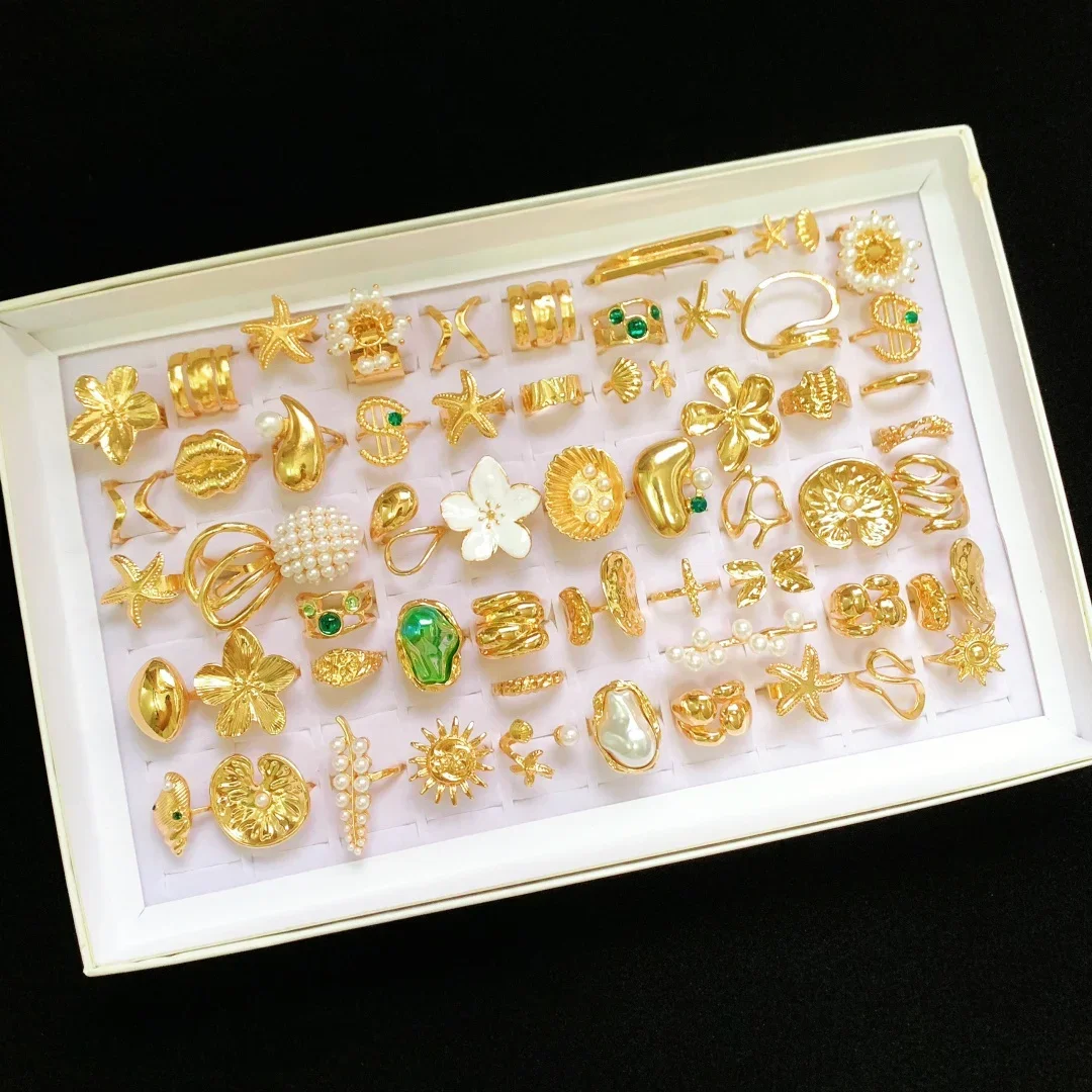 10/20/30Pieces Fashion Flowers Geometric Irregular Line Open Ring Set For Women Mix Style Trendy Jewelry Party Gifts