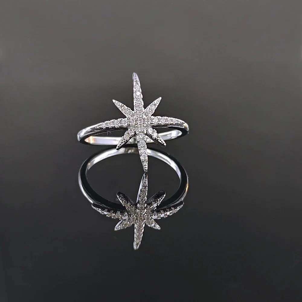 2025 new arrival Unique Design silver color star fashion ring for women Valentine's Day gift Jewelry wholesale R5945