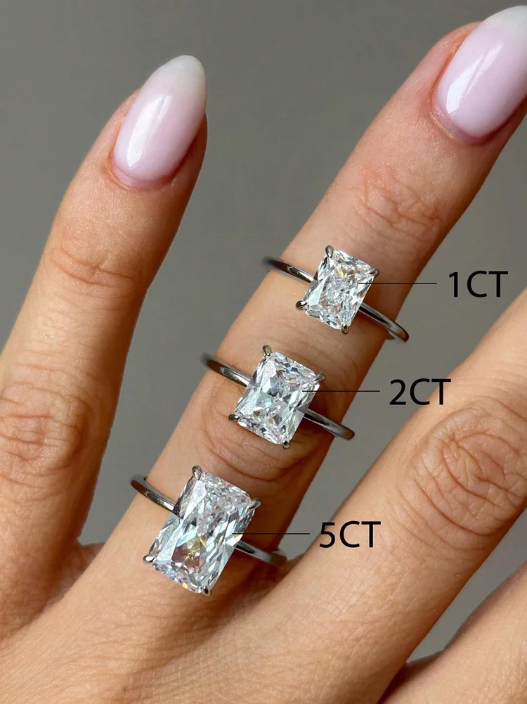 925 Sterling Silve Luxury Shiny 1-5CT Zircon Rectangle Ring For Women Engagement Wedding Gorgeous High Quality Fine Jewelry