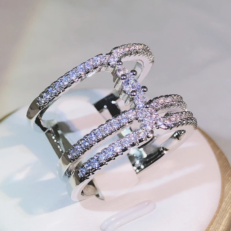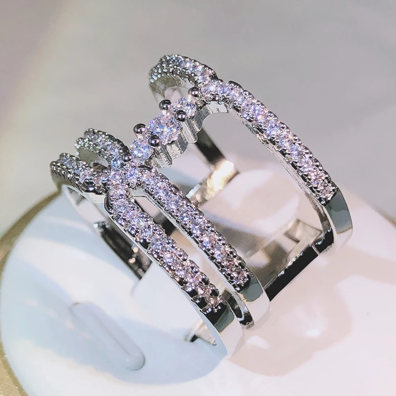 925 Sterling Silver Fashion Multi-layer Chains Zircon Rings for Women Wedding Simple Statement Rings Couple Wedding Rings